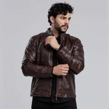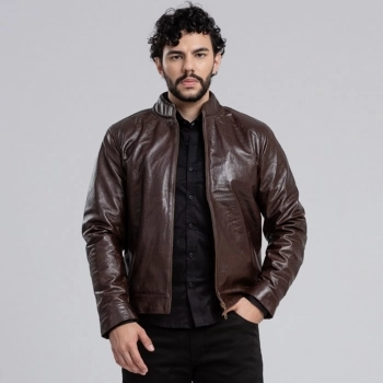 Descrição Complementar Jaqueta em couro legítimo.2 bolsos frontais embutidos.1 bolso interno.Fechamento frontal com zíper de metal.Zíper de metal na manga para ajuste.Forro 100% poliéster.